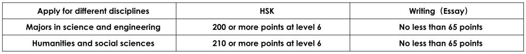 (1) Applicants for disciplines taught in Chinese should submit transcripts or other relevant documents proving their Chinese language proficiency in accordance with the following standards.