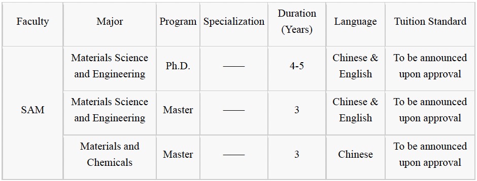 ・School of Advanced Materials Scholarship: SAM offers scholarships to students who do not receive the Chinese Government Scholarship.