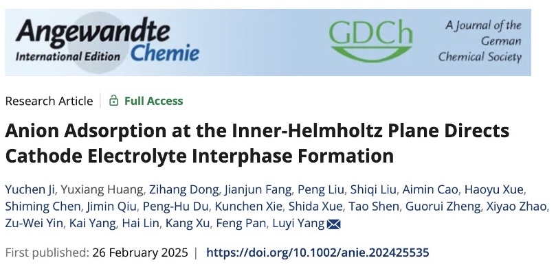 This study not only deepens the academic understanding of CEI formation mechanisms but also provides critical theoretical guidance for the future design of high-performance lithium-ion battery electrolyte systems and the optimization of electrode/electrolyte interfaces. The findings were published in the internationally renowned chemistry journal Angewandte Chemie International Edition under the title “Anion Adsorption at the Inner-Helmholtz Plane Directs Cathode Electrolyte Interphase Formation” (DOI: 10.1002/anie.202425535).