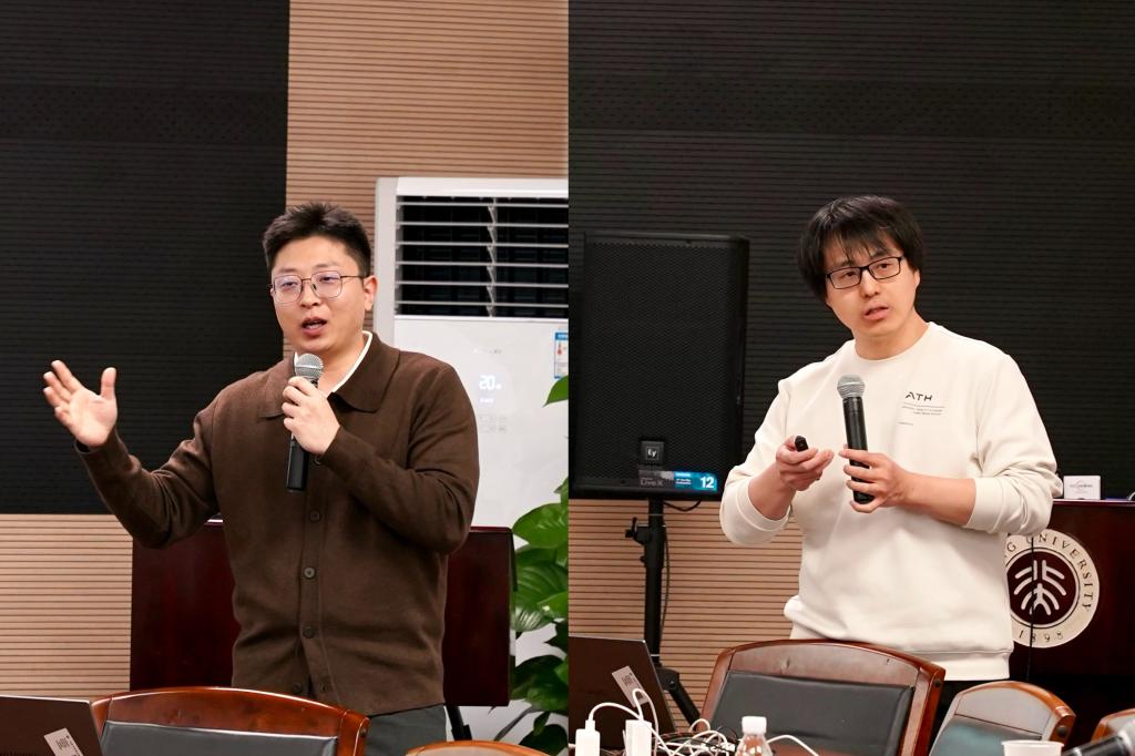 新引进的两位青年教师——助理教授林德武博士和王明超博士作主题报告。林德武博士以“数据驱动碳纳米管智能制造”为题,系统阐述了人工智能技术在碳纳米管材料结构可控批量制备领域中的应用潜力,为材料制造领域的智能化转型提供了创新思路和理论支撑。随后,王明超博士带来了以“方形二维共轭聚合物功能材料”为主题的报告,详细介绍了高载流子迁移率二维共轭聚合物材料的设计制备,深入探讨其电子结构的精准调控,并重点分析了该类材料在电子器件与新能源利用领域的广阔应用前景。