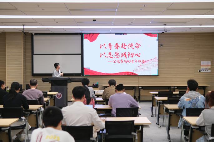 22级材料物理专业本科生任鹏丞同学,介绍了其在全运会期间承担媒体记者引导工作的经历。他详细介绍了从报名选拔到正式上岗的严谨流程,包括院系推荐、通用培训考核、专项技能培训等多个环节。历经325天的充分准备,他深刻体会到,每一场大型赛会顺利举办的背后,都凝结着无数志愿者持之以恒的辛勤付出。