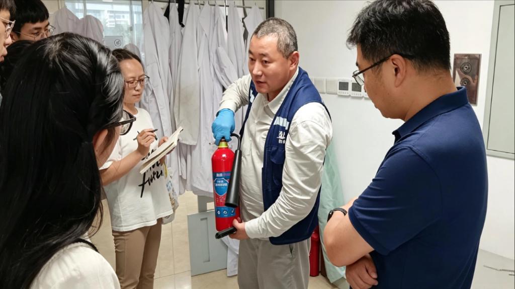安全分管领导肖荫果副院长的带领下,第三方专业机构人员与全体实验室管理员组成检查小组,围绕安全设施配备、仪器设备运行状态、危险化学品管理、实验操作规范执行及应急处理措施等环节进行了全面细致的排查。检查中发现,部分实验室仍存在灭火器配置级别偏低、气体管路未按规定标识、应急药品储备不足、危险化学品存储管理不规范、电器设备过载使用等安全隐患。