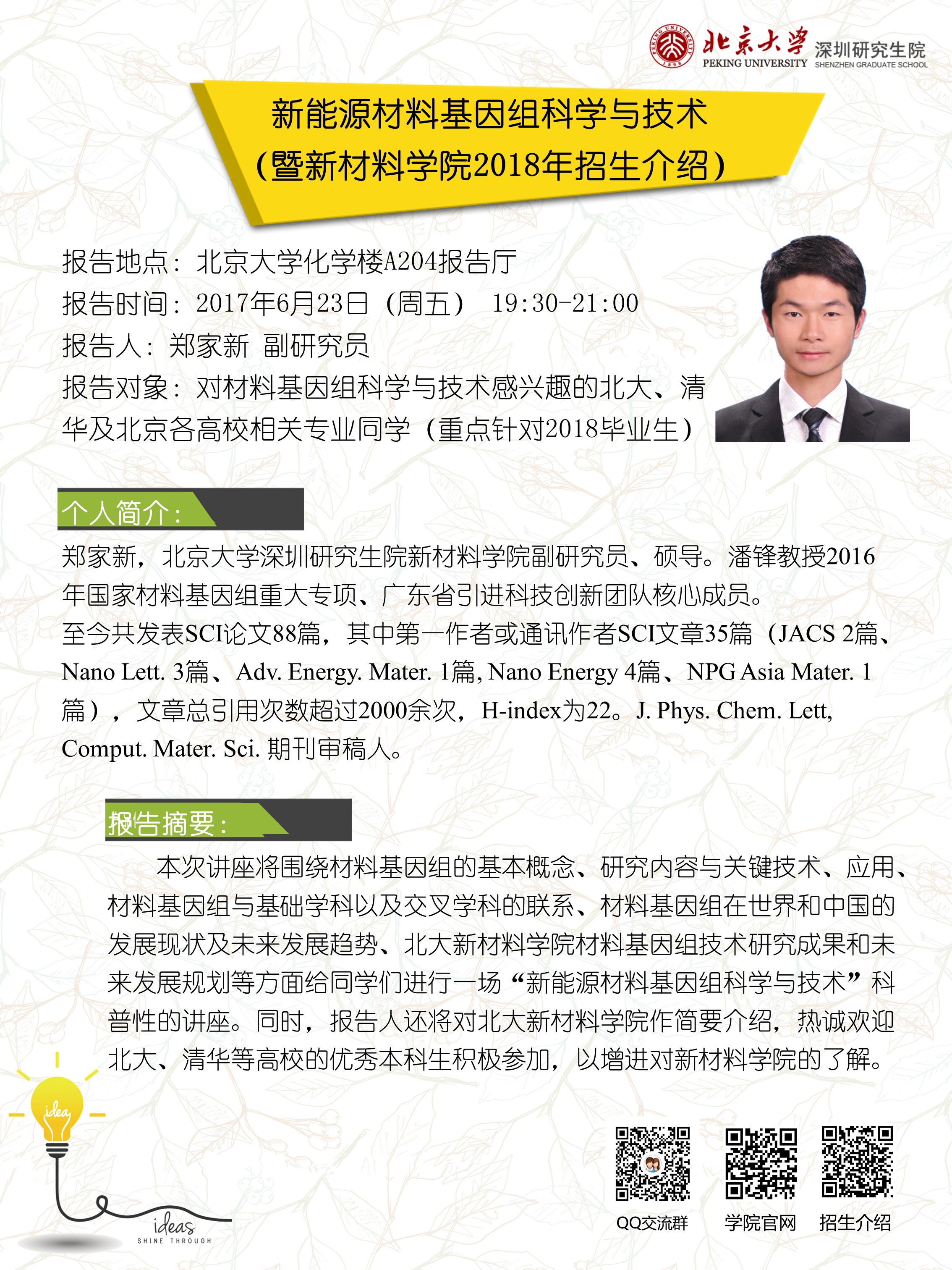 【招生系列宣讲一】新能源材料基因组科学与技术 (暨2018年招生介绍)