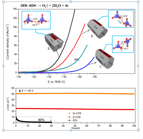 研究团队采用溶剂法合成了三种相结构的Li2CoSiO4 (βII、βI、γ0)纳米颗粒,研究了Li2CoSiO4纳米晶的三个相(βII、βI、γ0)在碱性条件下的OER性能。发现βII相的Li2CoSiO4是高效的和低成本的OER催化剂,OER性能(10 mA cm-2电流密度下的过电势为270 mV, Tafel斜率为44 mV dec-1)超过了基准的IrO2和近年来报道的一系列的钴基催化剂。并且在1.55V恒压100小时的析氧电流没有任何衰减,证明具有优异的析氧稳定性。