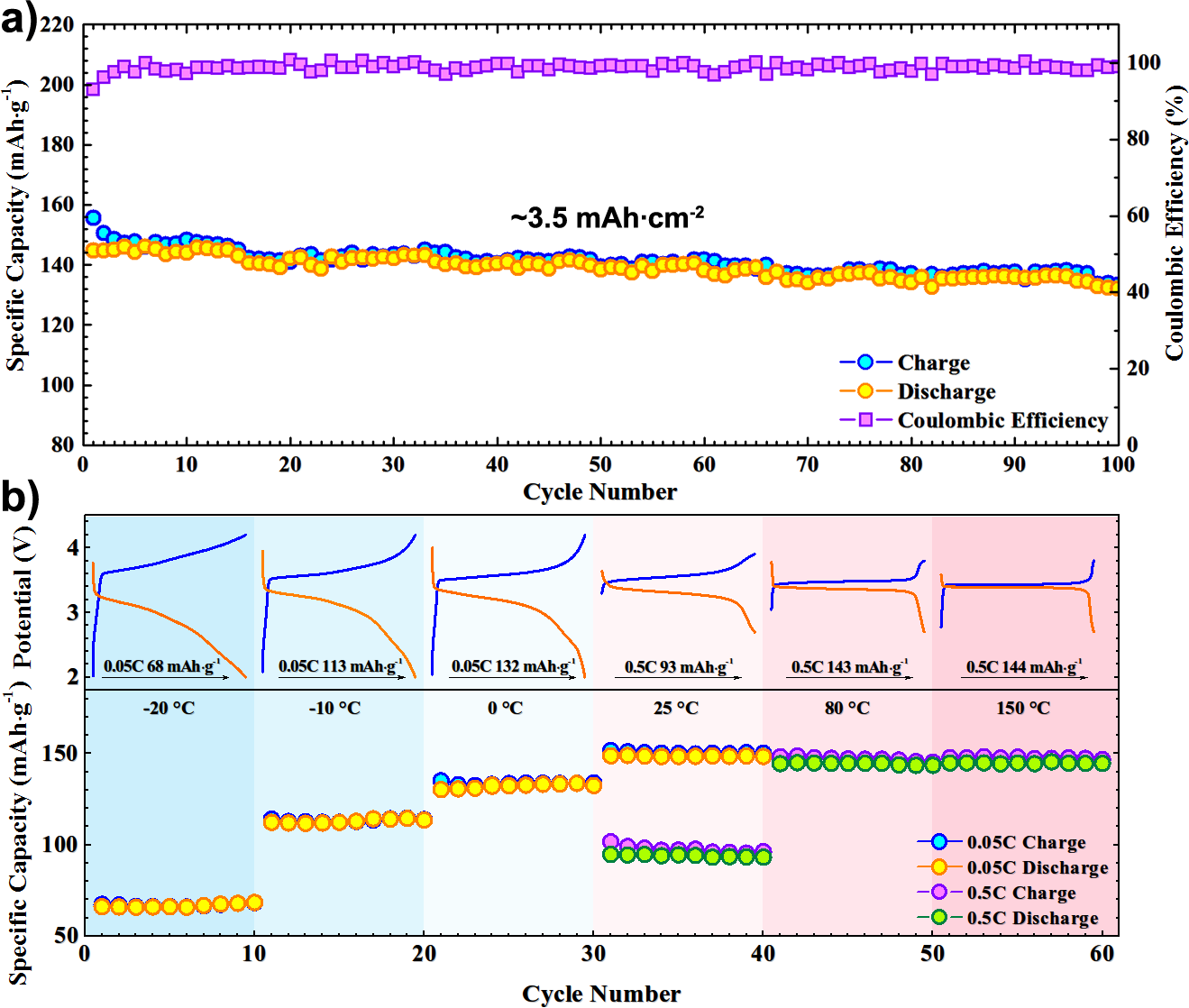图2 固态电池长循环稳定性以及在不同温度下的循环容量