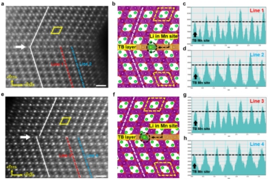 图1:通过调控组分和合成工艺在尖晶石锰酸锂材料中引入孪晶晶界结构示意图,锂离子在孪晶晶界附近具有更高的扩散速率。