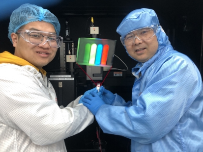 目前,几乎所有应用在柔性电子中的传统光电器件无论是无机发光,有机发光,还是量子点和钙钛矿发光二极管,都是“三明治型”的叠层结构,也就是需要在功能层两侧夹有两个电极,并且为了发射或吸收光,至少有一个电极必须是透明的。然而传统“三明治型”叠层结构给柔性电子领域带来了一些不可避免的问题。首先,透明电极的成本高,成为了整个器件成本构成的主要部分;第二,随着人类与电子设备的距离越来越近,对电子设备提出可拉伸、可折叠的要求,对电极透明性的需求将大大缩小电极的可选择范围,限制了其在未来智能可穿戴应用中的发展;第三,上下电极堆叠形成封闭的器件结构,难以直接集成传感模块,实现传感和人机交互的功能,且无法实现三相电直接驱动。