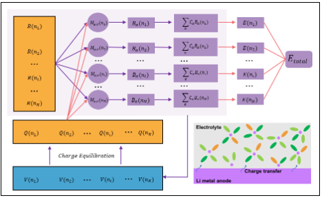 郑家新课题组与深圳屹艮科技合作,开发了耦合电荷的矩张量势(Moment Tensor Potential with Charge, QMTP)模型,并基于该模型实现了对锂金属负极界面上发生的电化学和化学反应的分子尺度动态解析。该研究揭示了锂金属与电解液界面耦合过程的动态机制(特别是电荷转移的关键作用),并提出基于电荷转移动力学调控的界面设计新策略。相关研究成果以“Unraveling charge effects on interface reactions and dendrite growth in lithium metal anode”为题,发表于计算材料领域著名期刊npj Computational Materials(中科院一区Top)。