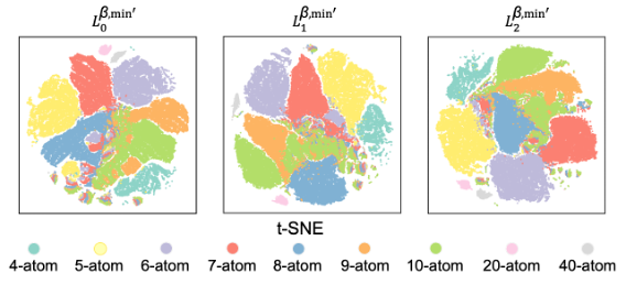 值得注意的是,高维信息的重要性随维度增加呈递减趋势:0维特征贡献度最大,1维次之,2维最小。这一趋势与多体物理学理论高度一致——高阶相互作用通常被视为系统的微扰修正,从而验证了该拓扑方法的物理可解释性。此外,该框架展现出强大的泛化能力:使用小尺寸原子簇(Li4-Li10)训练的模型,能有效预测结构更加复杂的大尺寸原子簇(Li20和Li40)的能量。引入高维信息后,模型对Li20和Li40能量排序的准确性(通过皮尔逊相关系数PCC衡量)显著提升,这对复杂结构空间中稳定构型的筛选具有重要价值。