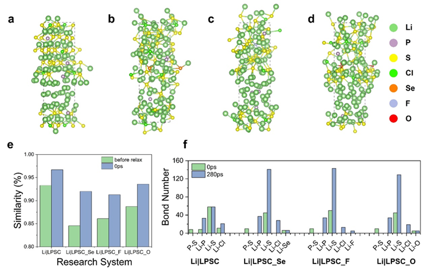 图3. 四种体系(Li|LPSC、Li|LPSC_Se、Li|LPSC_F 和 Li|LPSC_O)界面反应对比