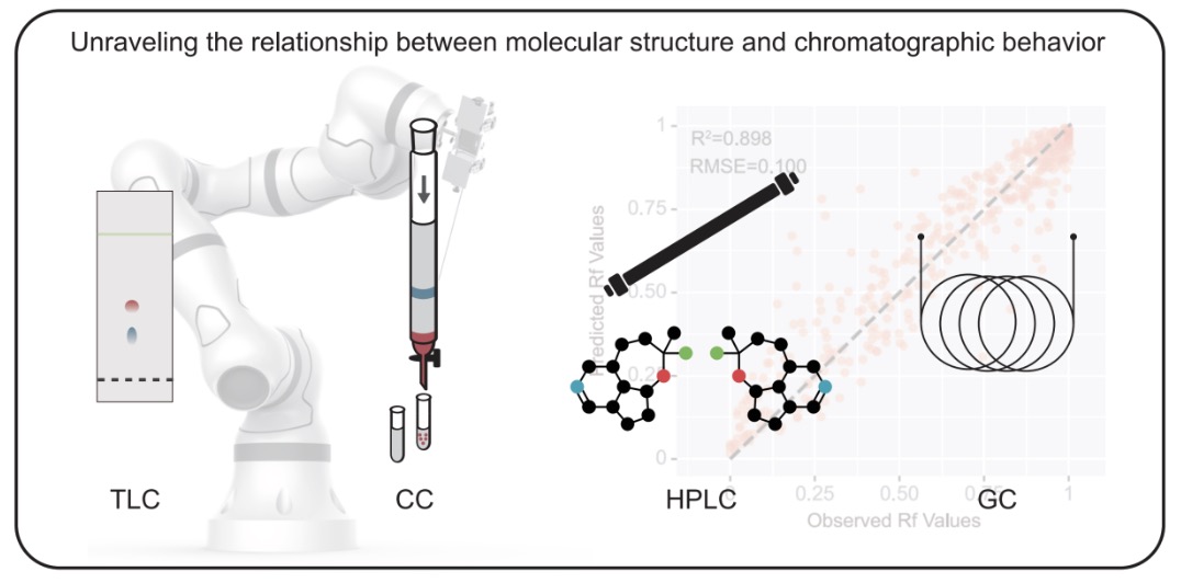 色谱技术是化学研究与工业生产中最基础、最关键的分析与纯化方法之一,广泛应用于有机合成、材料制备、药物研发和精细化工等领域,其分离效率和可靠性直接影响化学研究与工程实践的整体质量。然而,色谱行为由分子结构、实验条件与分离介质等多因素共同决定,机理复杂、耦合性强,长期以来色谱方法的建立与优化主要依赖研究者经验和反复试错,难以形成系统化、可迁移的预测模型,制约了分离效率提升与实验结果的可重复性。在此背景下,将实验自动化与人工智能方法引入色谱研究,通过数据驱动与机理约束相结合的方式,对色谱分离过程进行建模与预测,可为实现色谱分离过程的可预测化与智能化提供新的研究路径。