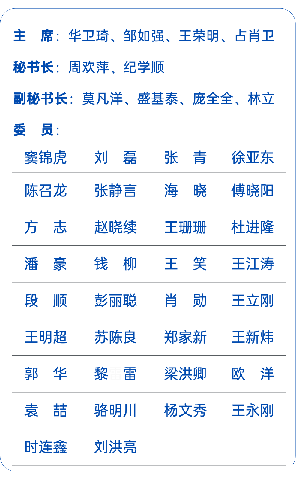 执行主席:华卫琦、邹如强、王荣明、占肖卫