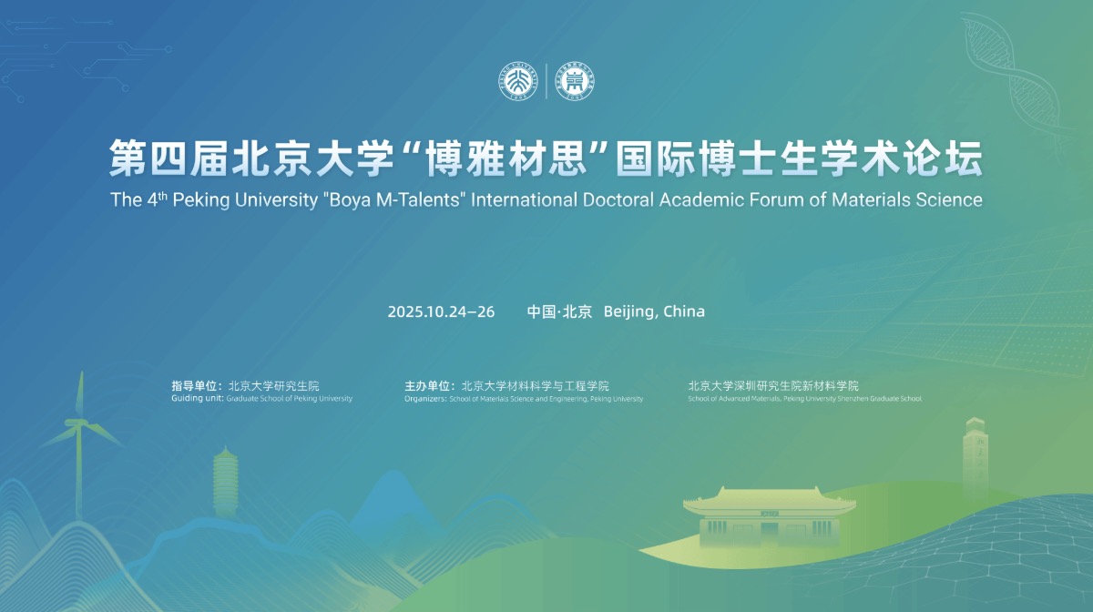 第四届北京大学“博雅材思”国际博士生学术论坛将于2025年10月24日-26日在北京大学新燕园校区举行。本届论坛汇聚了来自国内外顶尖高校的数百名优秀材料学科博士生,他们将围绕材料领域最新研究展开深入的学术交流。