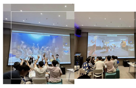 同学南北线上联通,通过大屏幕共享节日快乐,传递节日祝福与问候。大家同唱“月”曲,进行与“月”有关的歌曲接龙游戏,在互动中认识、熟悉,增进了解。