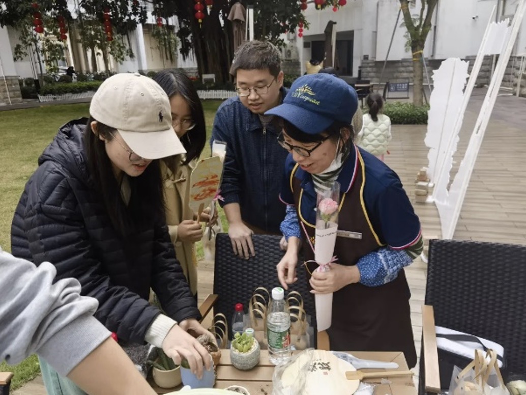 漆扇制作活动吸引了众多师生参与,现场笑语盈盈,彩漆流转生辉。在无限的可能性与想象力的加持下,一柄柄漆扇摇曳生风,皆是东方美学的指尖绽放。在主题打卡活动区,大家在相机的快门声中定格下灿烂的笑容,原来春意盎然中最美好的回忆,是此刻真实的我们。