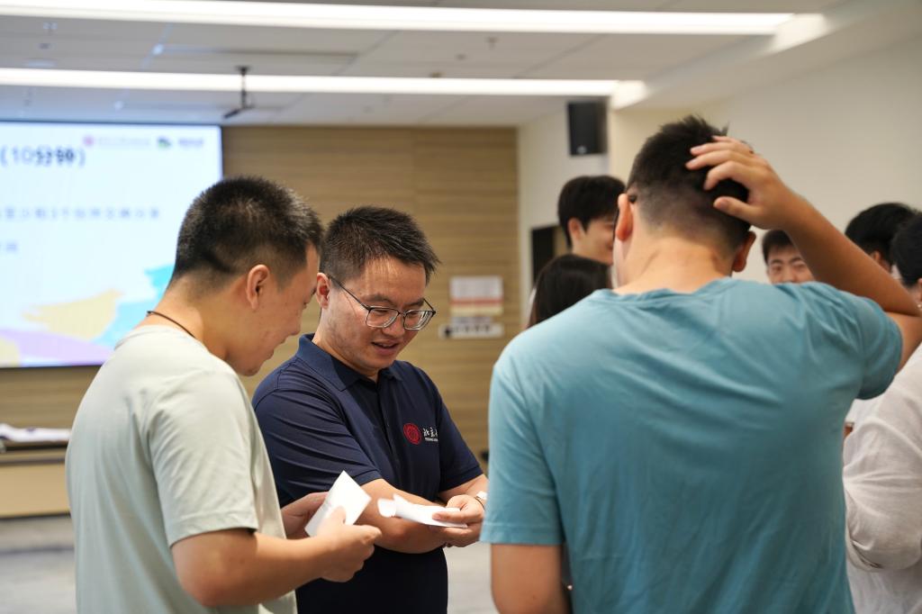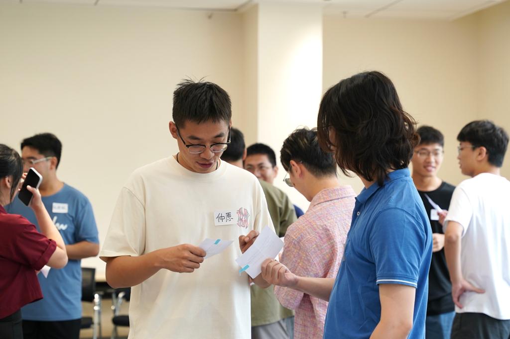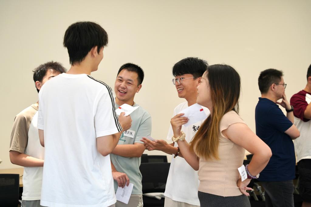 随后活动进入更深入的交流阶段。同学们三两组队,围绕提前抽取的卡片问题展开一对一畅谈。这些问题不仅贴近科研生活和内心世界,更引导大家分享真实的态度、经历甚至困惑。在专注的倾听与真诚的回应中,同学们不仅交换了故事和观点,也悄然建立起信任与共鸣——人与人之间的联系,正从初识的“表面寒暄”逐渐走向“真实的理解与共情”。